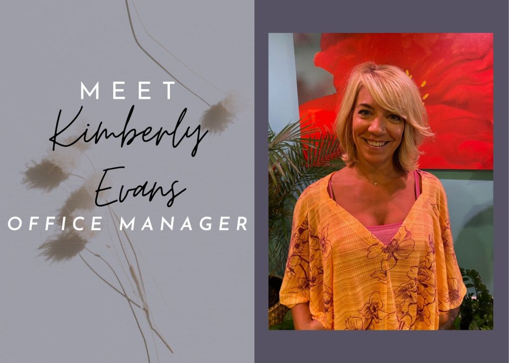 Kimberly is our Office Manager. She graduated with a Bachelors of Science in Human Development. Using her degree, she has worked with public relations and customer service as she has worked in the fashion, floral, and the yoga industry prior to working at Evans Chiropractic. With her background in fashion and design she was also the head designer for renovating our office in 2016 and continues to make updates to make it the best possible experience for our patients. Kimberly cares for her community and wants to help as many people as possible. With that being said, Kimberly started her journey with Integrated Energy Therapy (advanced Level). Following her therapy, she then started to work towards her USUI Shiki Ryoho Reiki Mastership. She then went on to get her certifications in becoming a Yoga Teacher with a certification in Restorative Yoga and Radiant Child Yoga Instructor. All leading up to her 200+ hours of becoming a certified Kundalini Yoga and Meditation Teacher. Kimberly is always conversing with our patients and cracking jokes behind the desk. Be sure to give her a warm hello every time you see her as she enjoys seeing all of our patients. She also loves to spend time with her husband Dr. Eric Evans and family at the beach. And you just might find her meditating in her car!